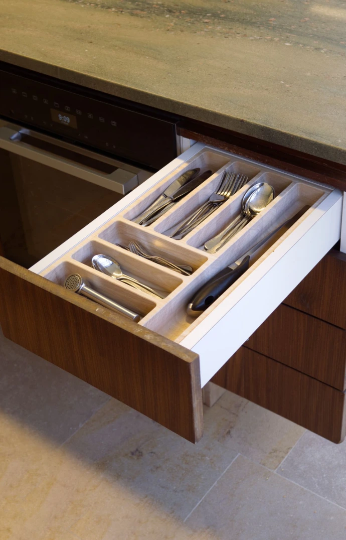 We use quality hardwood for our bespoke cutlery drawers. Every drawer is made to exact specifications.